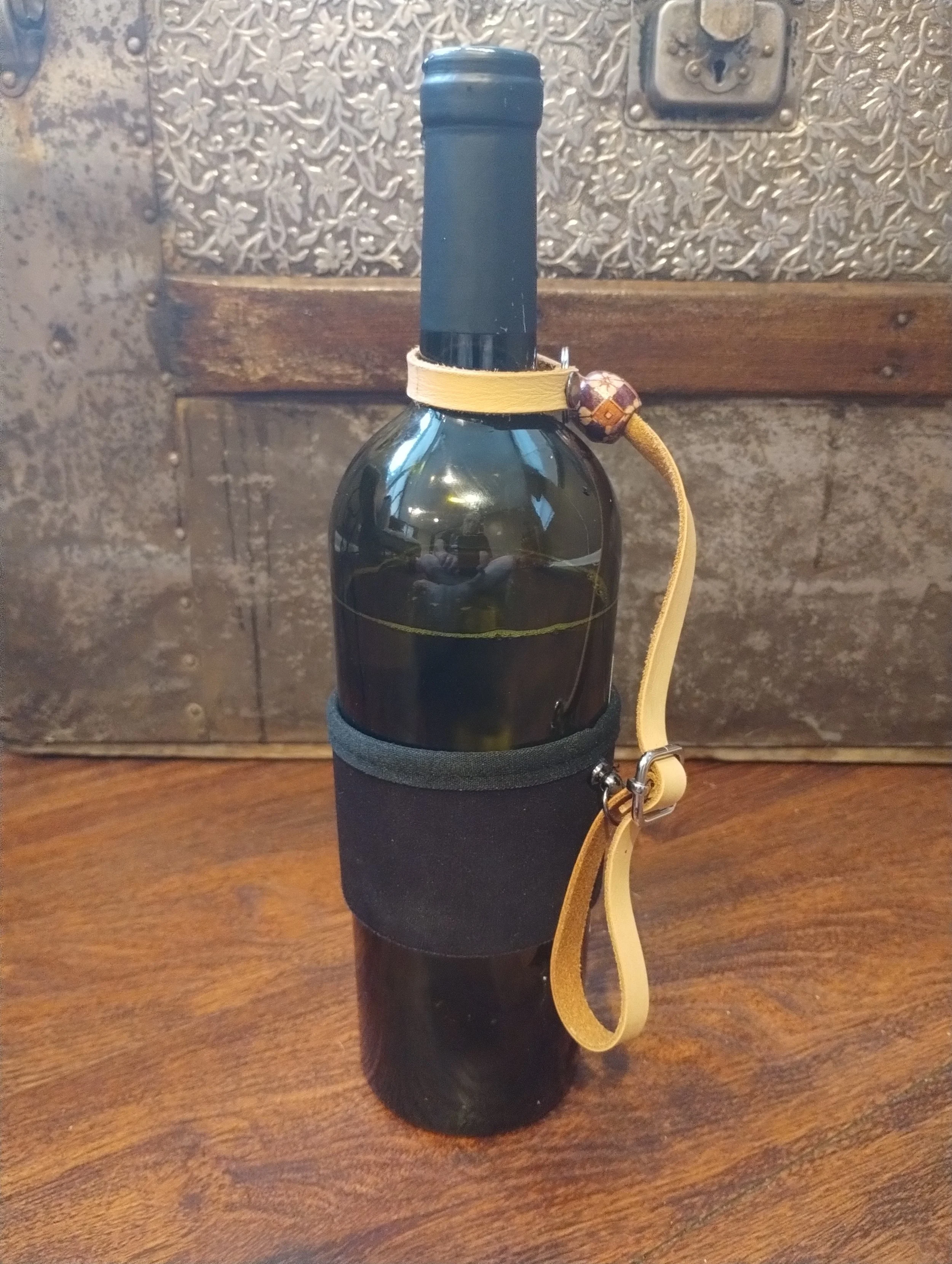 The Wine Bretella- is a US patented easy to apply and simple to use neoprene and leather wine pourer- a must-have for your collection.